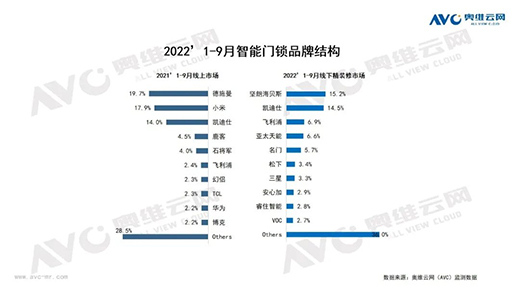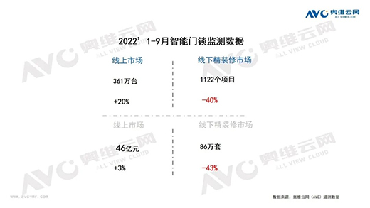 - 1-9月智能鎖精裝修規(guī)模為86萬套,德施曼、海貝斯分別領(lǐng)跑線上及精裝市場 - 2022/11/10