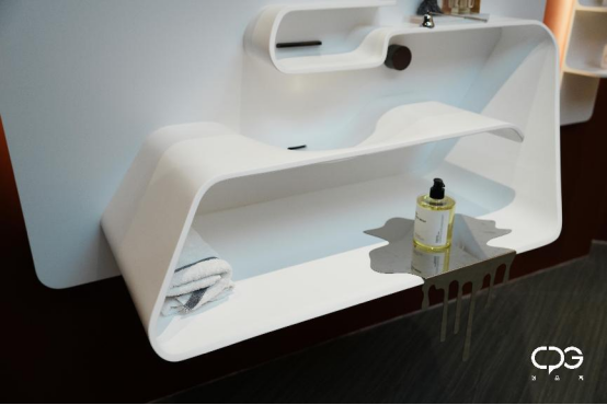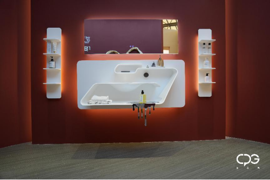 這次展示的部分新品浴室柜,更是以人造石+木材的形式來呈現CPG創品高全案衛浴的獨特美學。剛硬的人造石與溫潤的木,兩種截然不同的材質,結合多重技術和工藝,在CPG創品高全案衛浴的獨特設計下,展現出協調和諧的剛與柔的交融相依,在全新的角度下,勾勒出獨屬于CPG創品高全案衛浴的極簡美學。