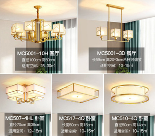 考慮到老家房子的裝修風格還是偏中式,所以我選了希爾頓家具中式款的全屋銅燈套餐,比較簡約的新中式設計,大大方方,家里老人也很喜歡。這個套餐一共有6種設計風格,包括北歐、輕奢、現代、中式、歐式、美式等,適合現在主流的家裝風格。
