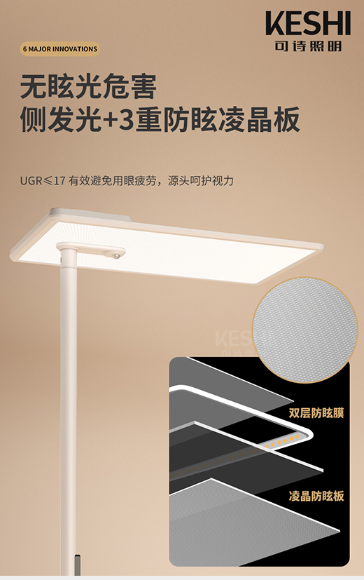 這款產(chǎn)品不僅巧妙地采用了側(cè)發(fā)光,且應用上3重防眩設(shè)計,包括雙層防眩膜及凌晶防眩板,防眩效果經(jīng)得起考驗。經(jīng)測試,UGR≤17,無眩光危害,本款護眼燈產(chǎn)品真正做到從源頭呵護眼睛,有效避免使用者用眼疲勞。
