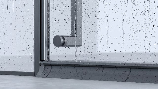玫瑰島淋浴房的磁力密封條,能達到1級封水效果。此外,玫瑰島2022年推出的QUEEN系列淋浴房中,就有獨家研發的黑科技封水設計——專利升降回水槽,開門時回水槽自動上升防止刮碰地面,關門時回水槽自動閉合,有效保障了淋浴房的封水性。