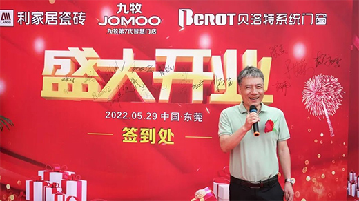 開業儀式中,利家居瓷磚品牌總經理陳總也到達了現場,與利家居清溪旗艦店總經理鄭總一起見證這一紀念性的時刻。衷心祝愿清溪旗艦店可以火力全開,業績蒸蒸日上!