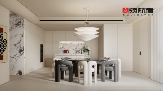 領航者家居的輕奢風追求簡潔而不簡單,這種簡潔并不是簡單的留白或單調,而是在細節中展現出高品質和舒適度,充滿了藝術感和設計感,從而彰顯一種高品質的生活方式。