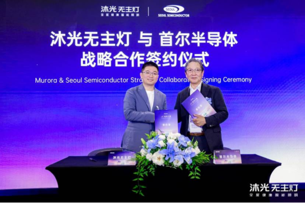 為進一步推動 AI 健康光技術的發展與應用,沐光在本次活動現場與多家科技領域頭部企業達成戰略合作。其中,沐光與全球知名 LED 芯片制造商首爾半導體達成戰略合作,雙方將在健康光源技術研發領域展開深度合作,持續提升紫光激發自然光譜技術,不斷優化光源性能。