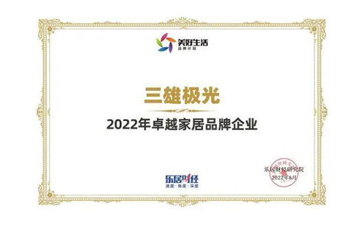 三雄極光創新發展獲肯定,斬獲“2022年卓越家居品牌”大獎