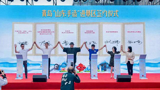 開幕式現場,青島手造產業融合平臺——“青島手造街”正式上線。同時,市民間藝術家協會就“山東手造”進景區項目,分別與嶗山風景區、極地海洋世界、奧帆中心、青島啤酒博物館、方特夢幻王國5個A級景區簽約。