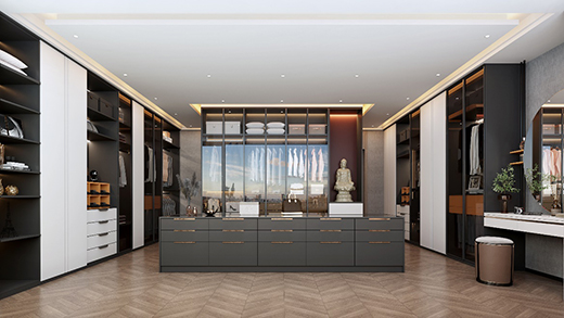 一個大容量,裝滿精致衣物與飾品的衣帽間大概是每個女生的夢想吧?把次臥改造成衣帽間,黑白經典雙色衣櫥整齊陳列,利落線條增添空間層次美感。