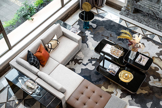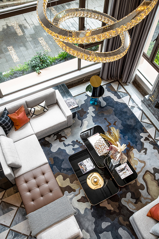 一層客廳空間,整體設(shè)計(jì)層次豐富且互相滲透,在多元材質(zhì)、元素、文化符號(hào)的碰撞中,營(yíng)造出獨(dú)具一格的空間對(duì)話語(yǔ)言,時(shí)而訴說(shuō)文化歷史、時(shí)而演繹經(jīng)典時(shí)尚、時(shí)而置換時(shí)空次序、時(shí)而營(yíng)造藝術(shù)靈境,讓我們?cè)诤椭C整體的大氛圍中,不斷捕獲折衷主義的新生魅力。