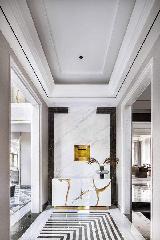 空間以大理石材質(zhì)鋪陳出冷靜優(yōu)雅的氣息,具有現(xiàn)代感、干凈的線條勾勒出質(zhì)感,凝結(jié)著人文風(fēng)韻的藝術(shù)陳列小品,則將中式的風(fēng)雅情致點(diǎn)染盡出。